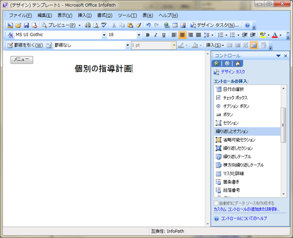 MicrosoftSQLServerとMicrosoftInfoPathで,データベースシステムの「個別の指導計画」を開発するために,InfoPathのビュー(ページ)を作成する |